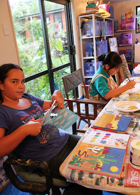 Young Artists can paint and mosaic on board but if they want to do it on stretched canvas for exhibitions they need to purchase this from Shiela Turners or Ayjays or some are available in $2.00 type shops.