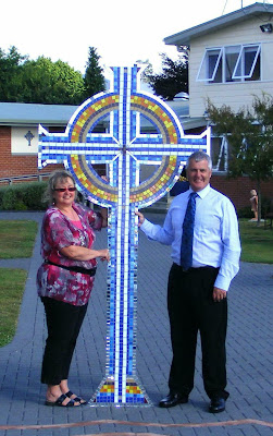Principal of St Mary's Catholic School Dave Macmllan commissioned me to make this cross using some of the school colours.